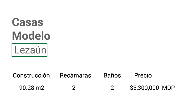 Amplios espacios, Conjunto cerrado, Tres amplias recámaras, Vestidor en recámara principal, Dos baños y medio, Cuarto de lavado, Jardin propio, Estacionamiento lateral, Construcción desde 169m2**, Superficie del terreno desde 187m2**, Lote tipo 11x17m